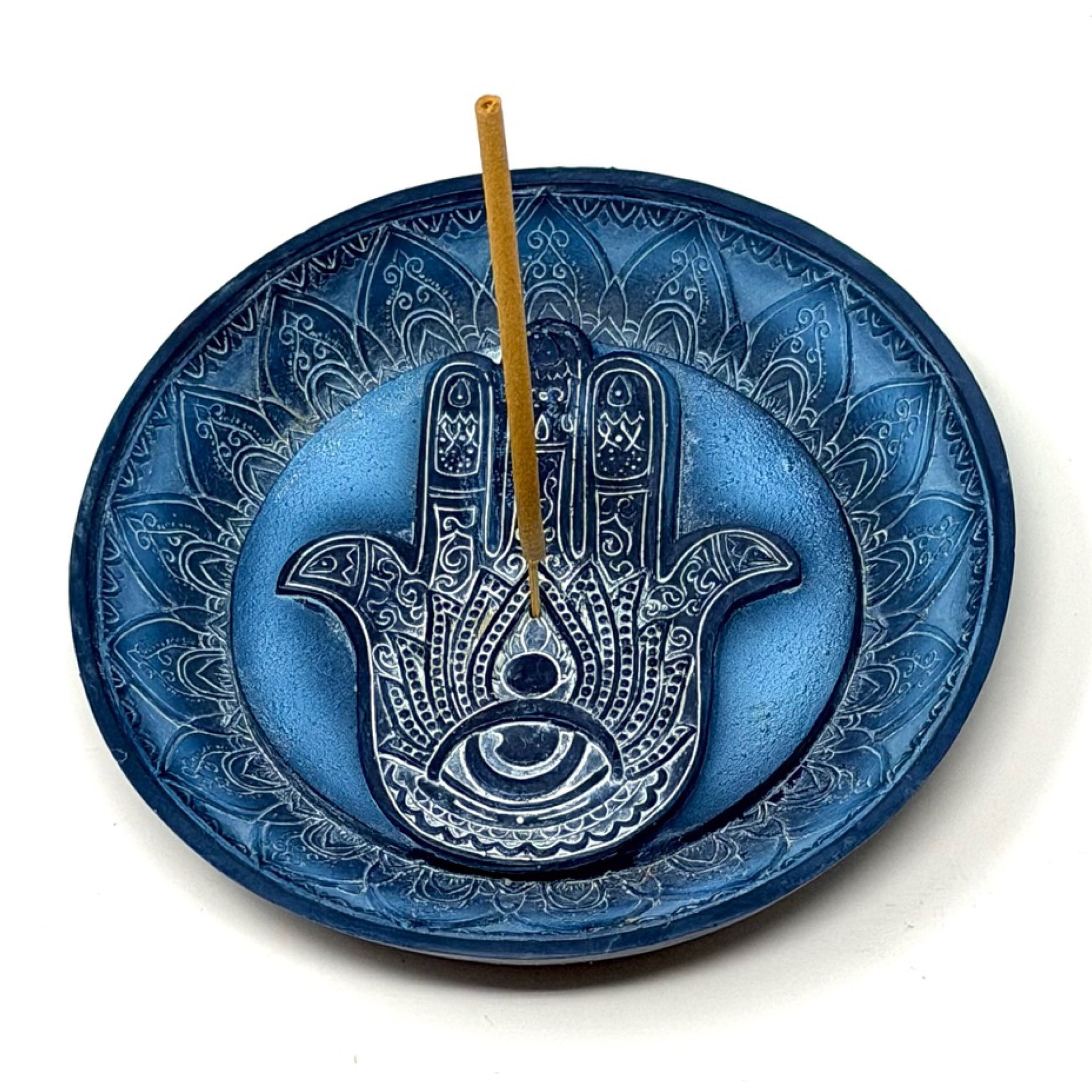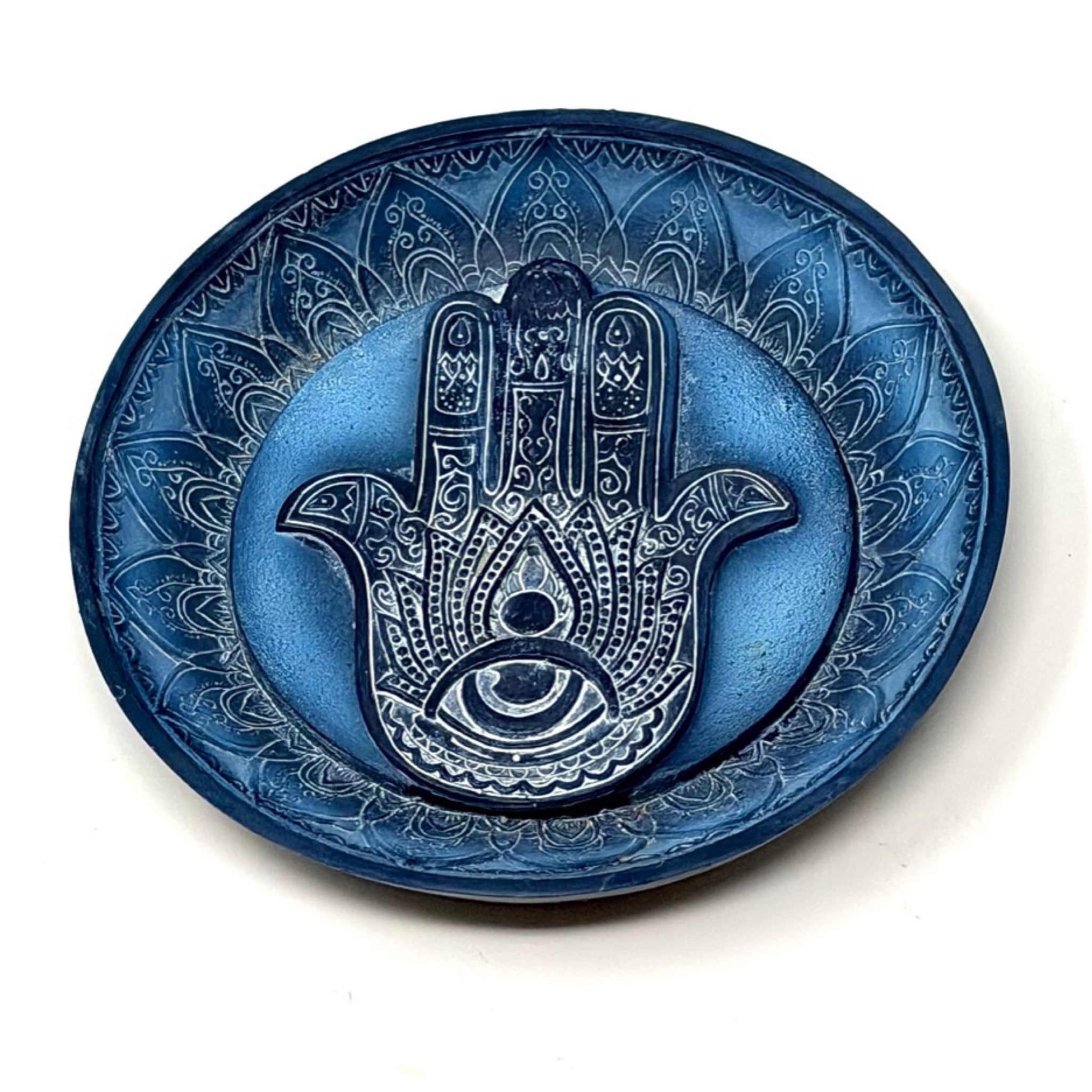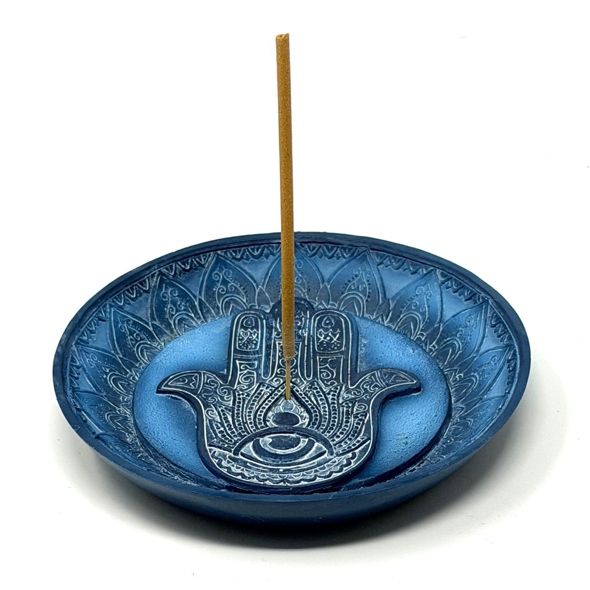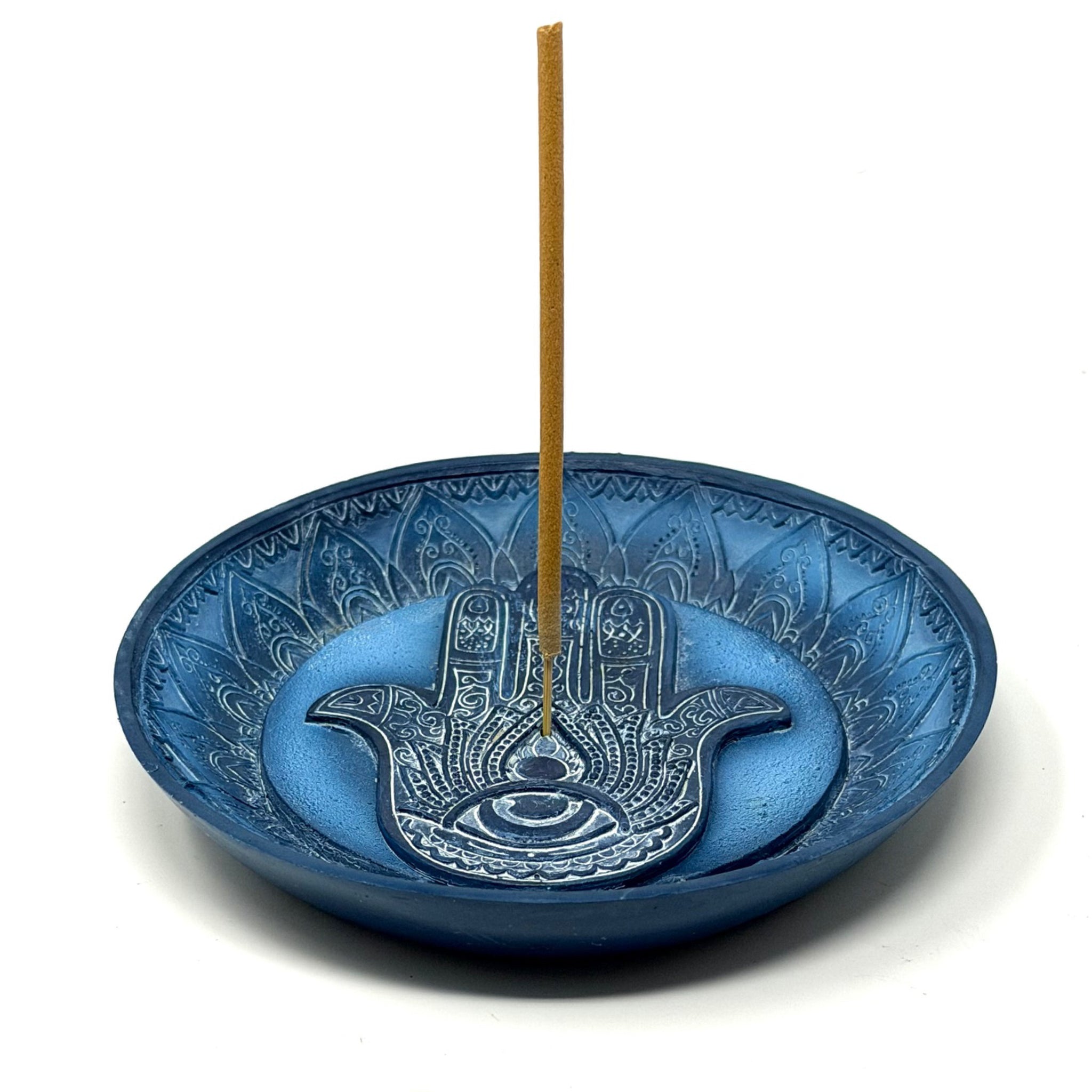 Add a touch of protection and serenity to your space with this beautifully detailed Hamsa Hand incense burner. Designed to catch ash while safely holding incense sticks, this decorative piece combines spiritual symbolism with everyday functionality.