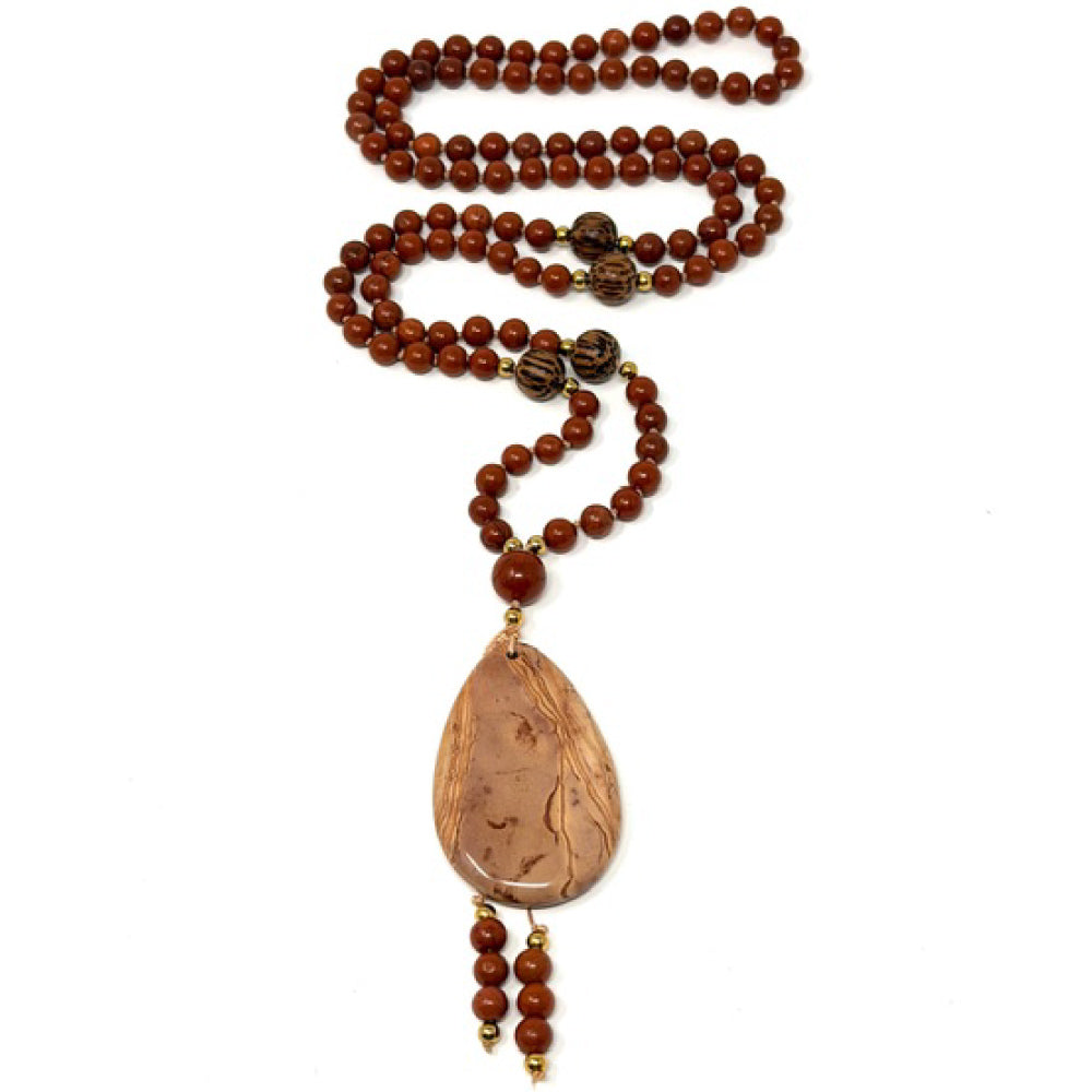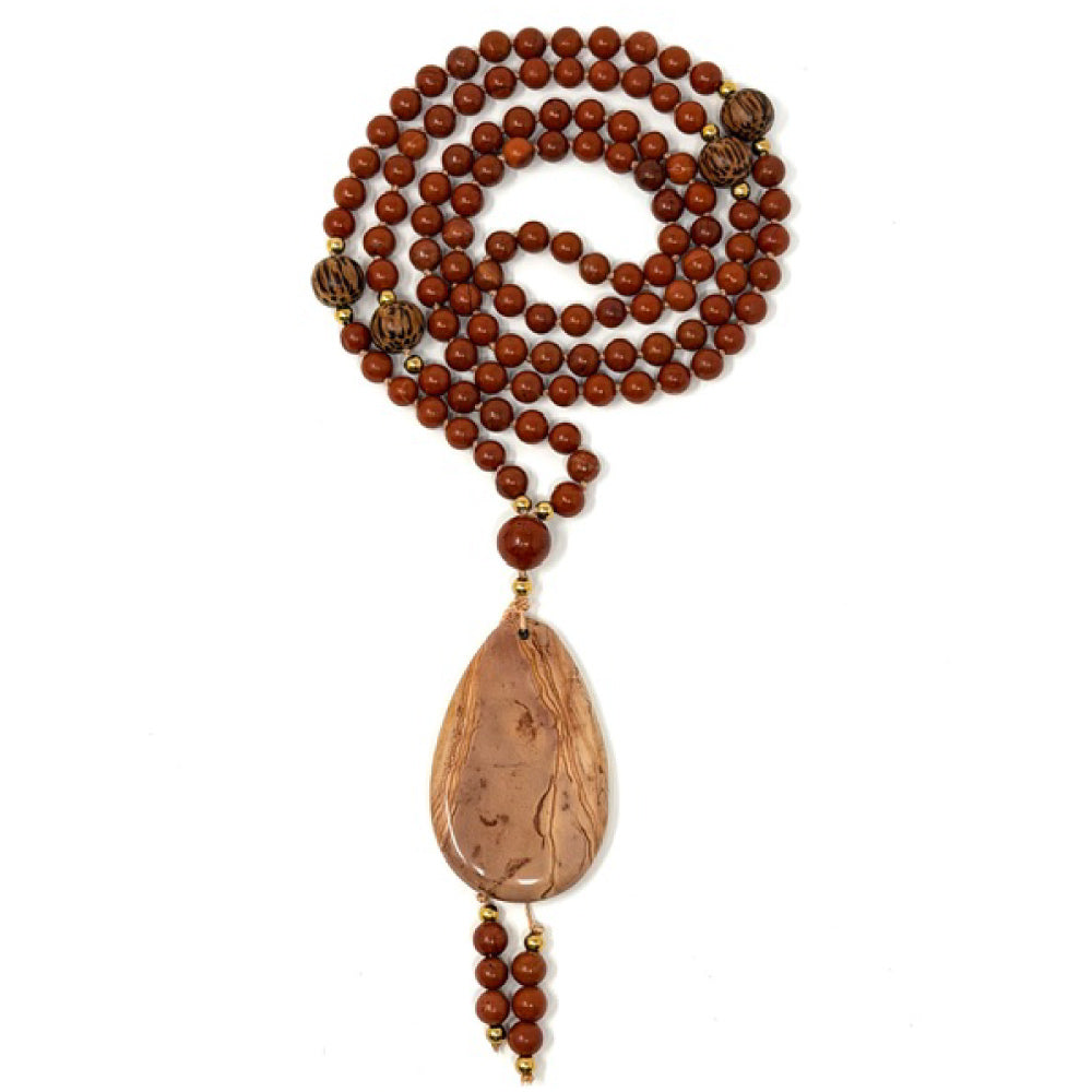 This handmade Red Jasper mala necklace is thoughtfully designed to support courage, grounding, and emotional stability in your daily life. Each bead has been carefully selected and strung with intention to create a harmonious flow of energy, making this piece perfect as both a spiritual tool and a mindful fashion accessory. The rich, earthy red hues of Red Jasper connect deeply with the Root Chakra, helping you feel anchored, confident, and present in every moment.