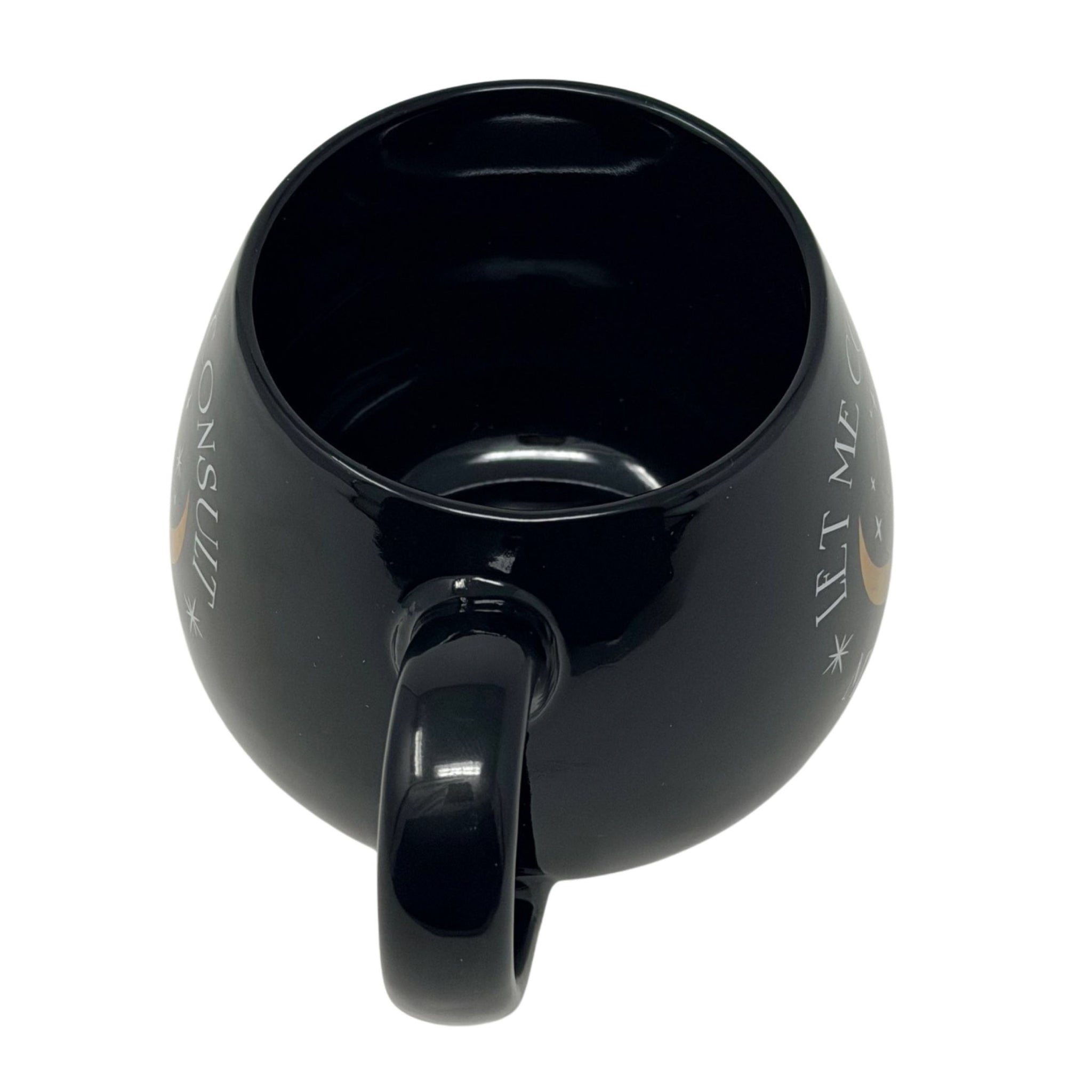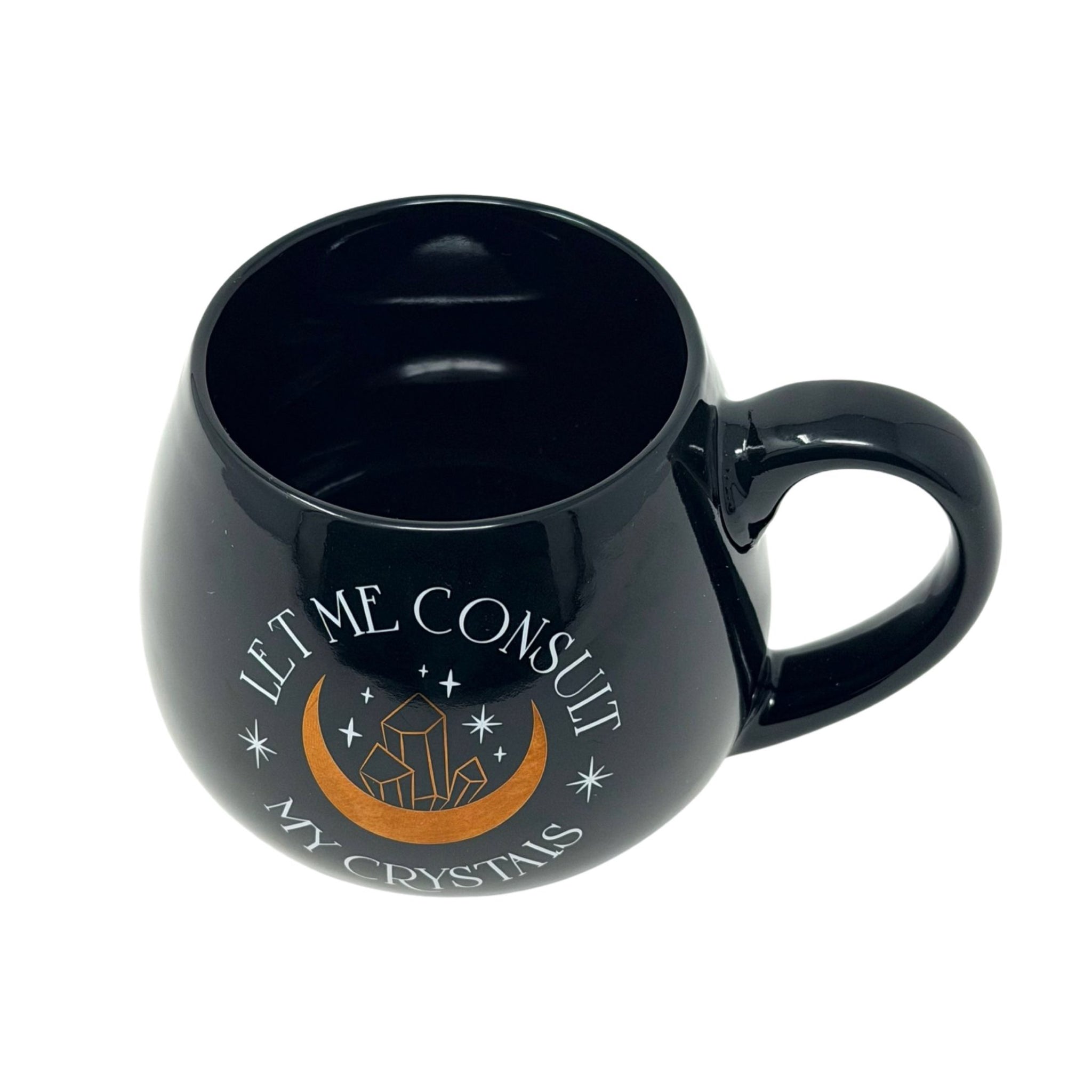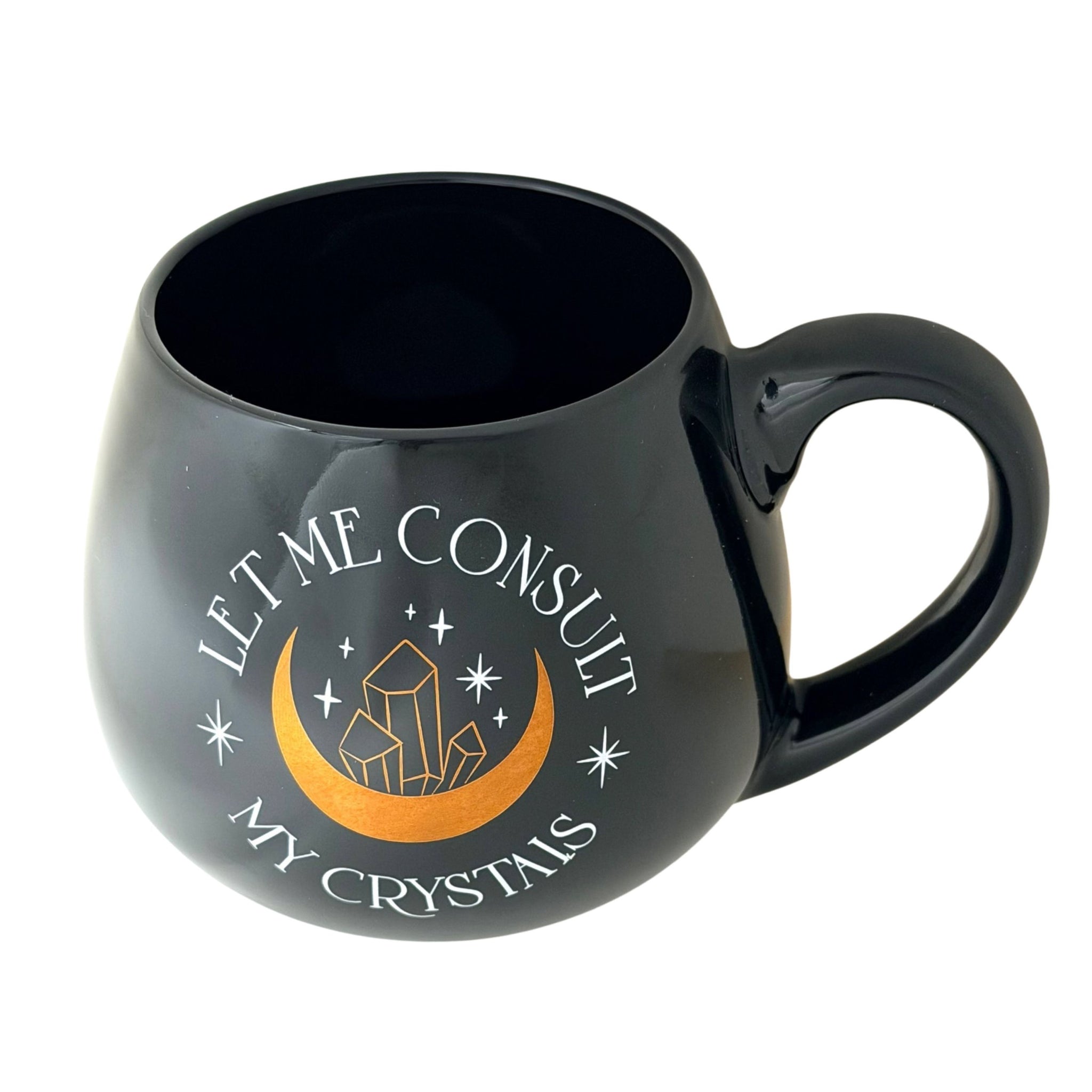 Embrace mindful moments with this elegant black coffee mug, featuring the contemplative phrase "Let Me Consult My Crystals." Perfect for those who appreciate spiritual wisdom and a touch of humor, this sophisticated vessel transforms your daily caffeine ritual into a moment of intention. Crafted for comfort and style, it's an ideal gift for crystal enthusiasts, meditation practitioners, or anyone seeking a meaningful conversation starter on their desk.
