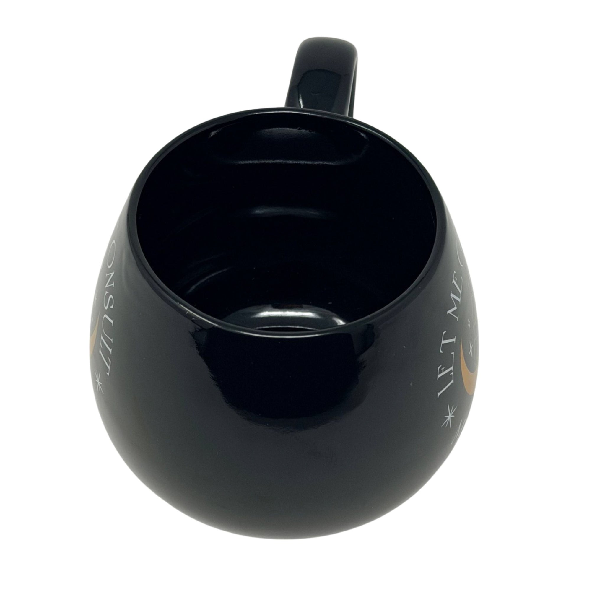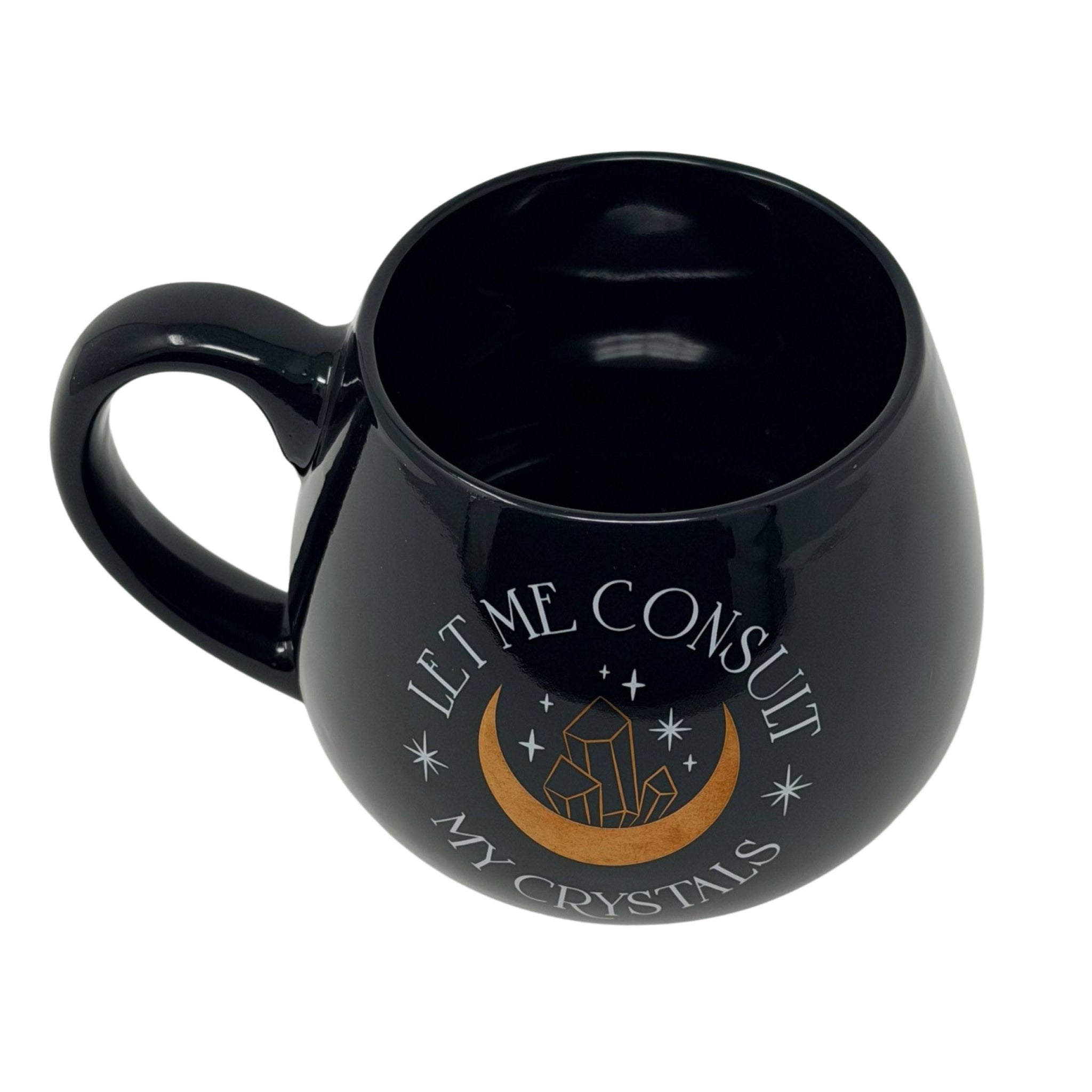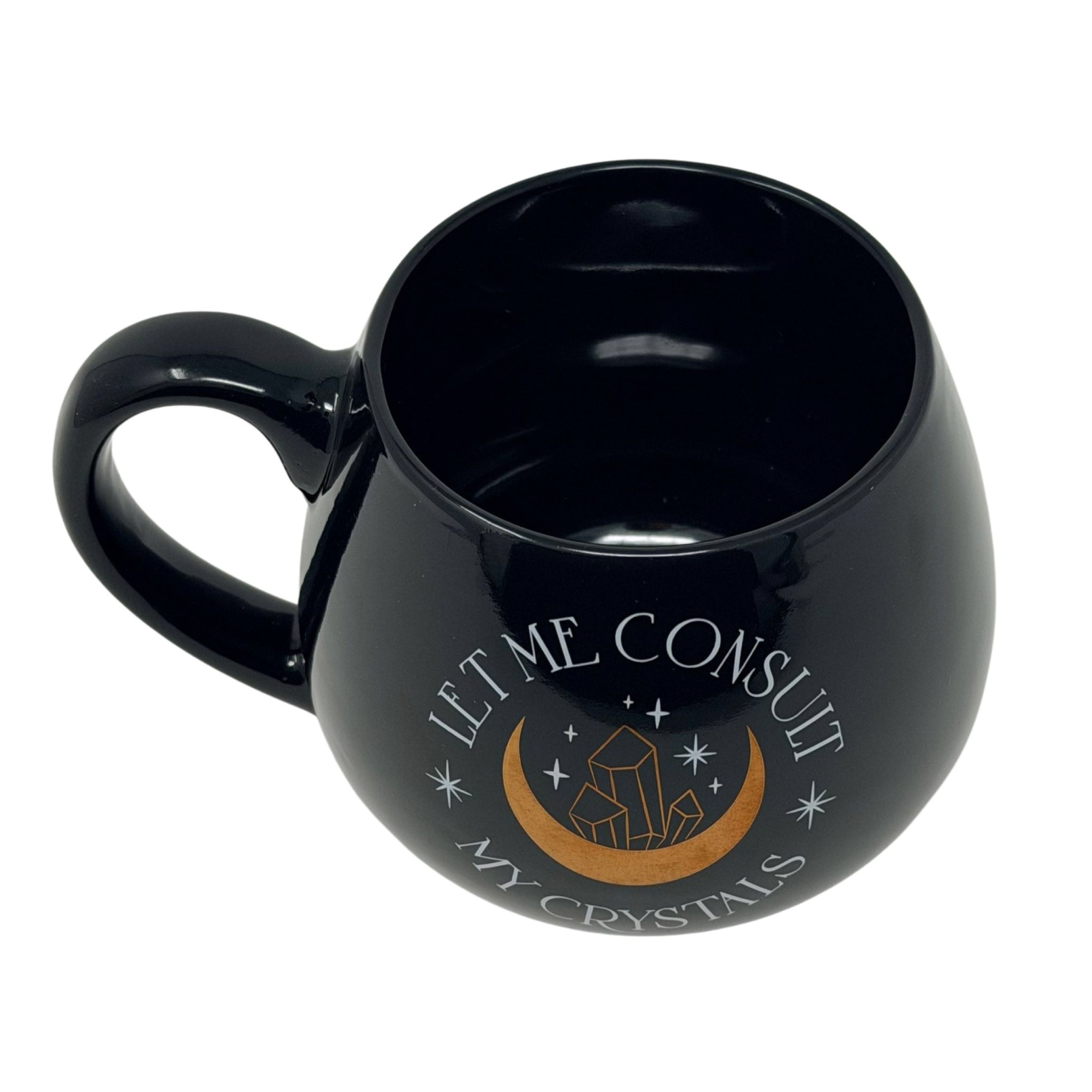 Embrace mindful moments with this elegant black coffee mug, featuring the contemplative phrase "Let Me Consult My Crystals." Perfect for those who appreciate spiritual wisdom and a touch of humor, this sophisticated vessel transforms your daily caffeine ritual into a moment of intention. Crafted for comfort and style, it's an ideal gift for crystal enthusiasts, meditation practitioners, or anyone seeking a meaningful conversation starter on their desk.