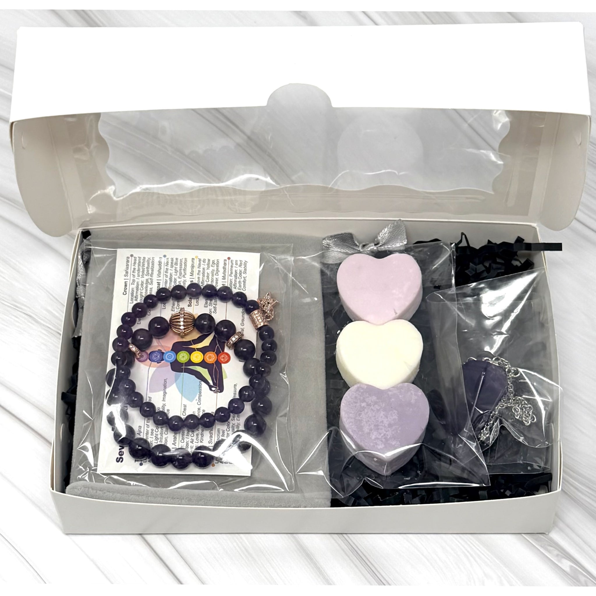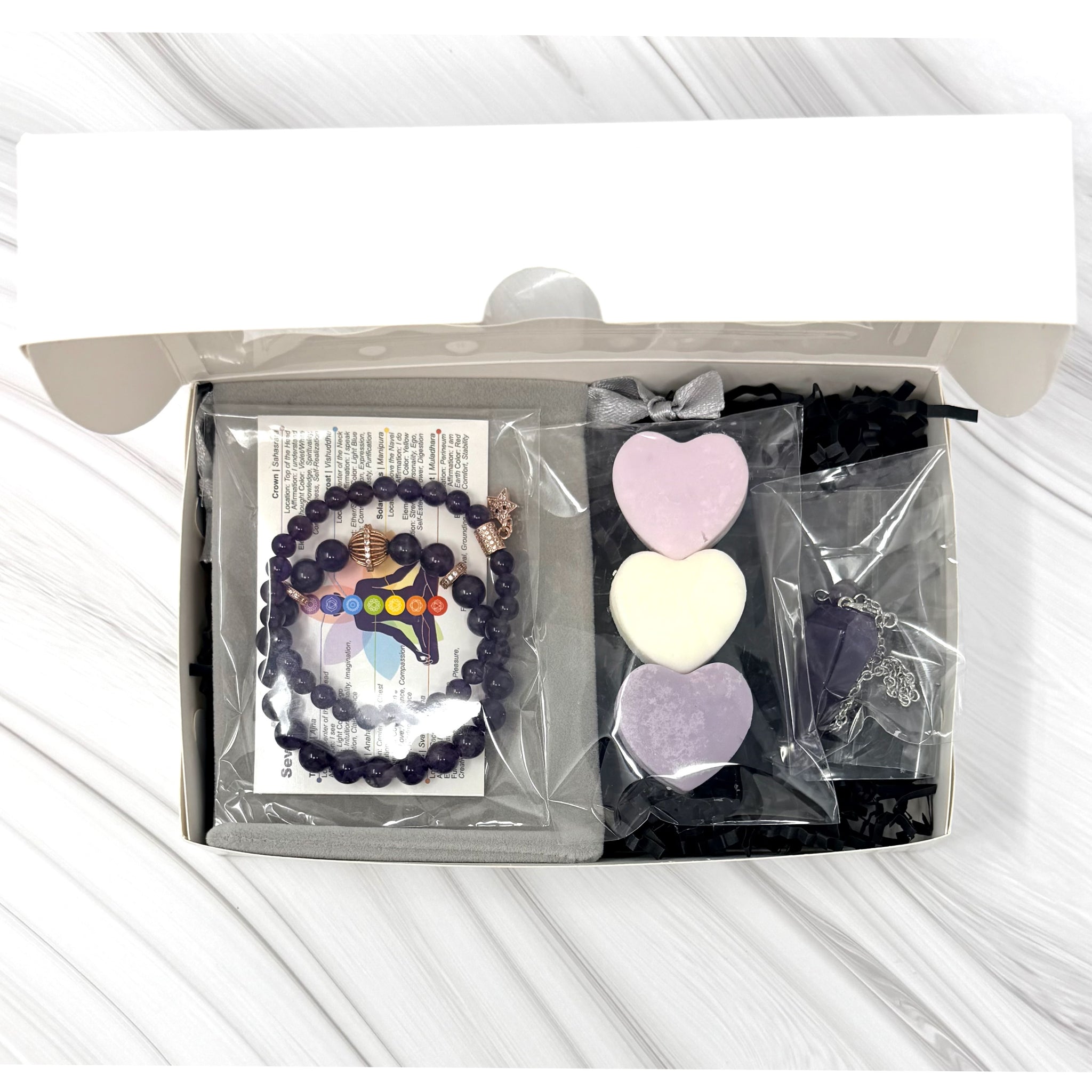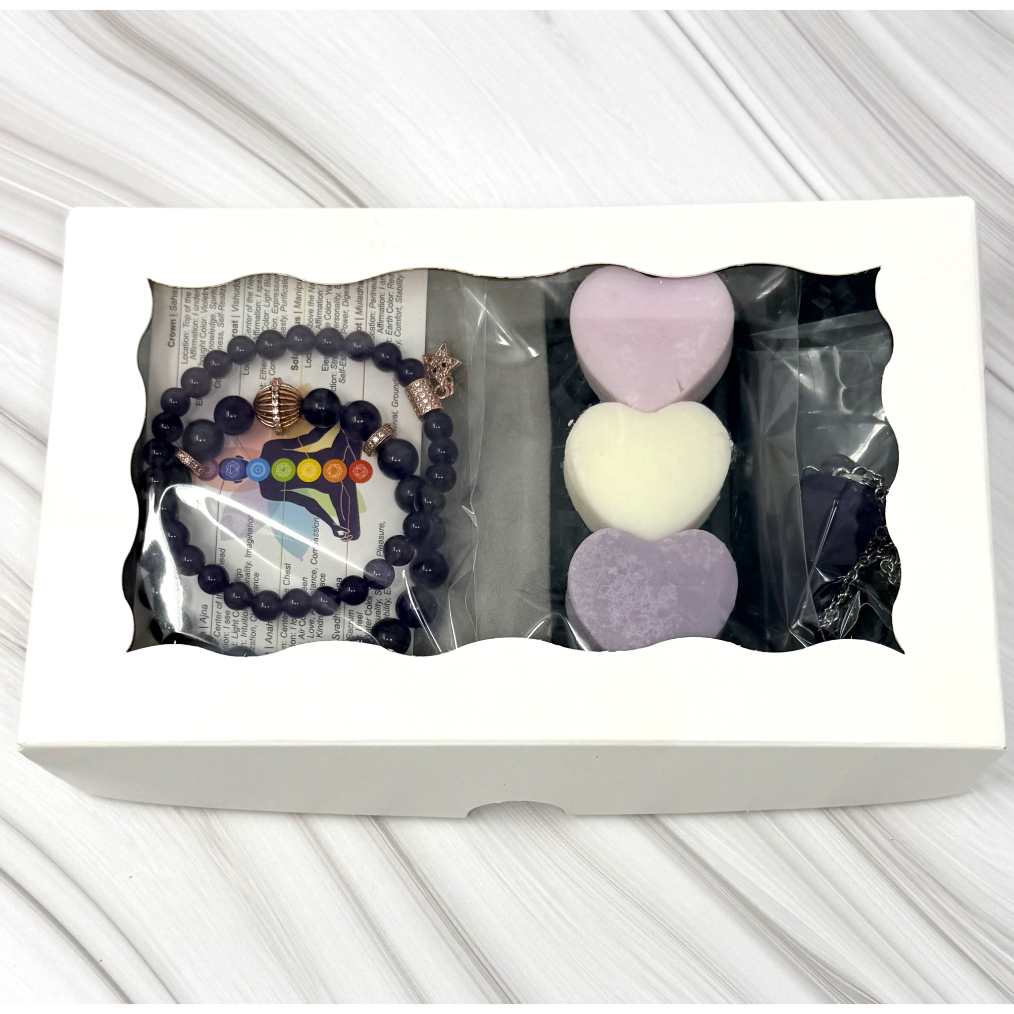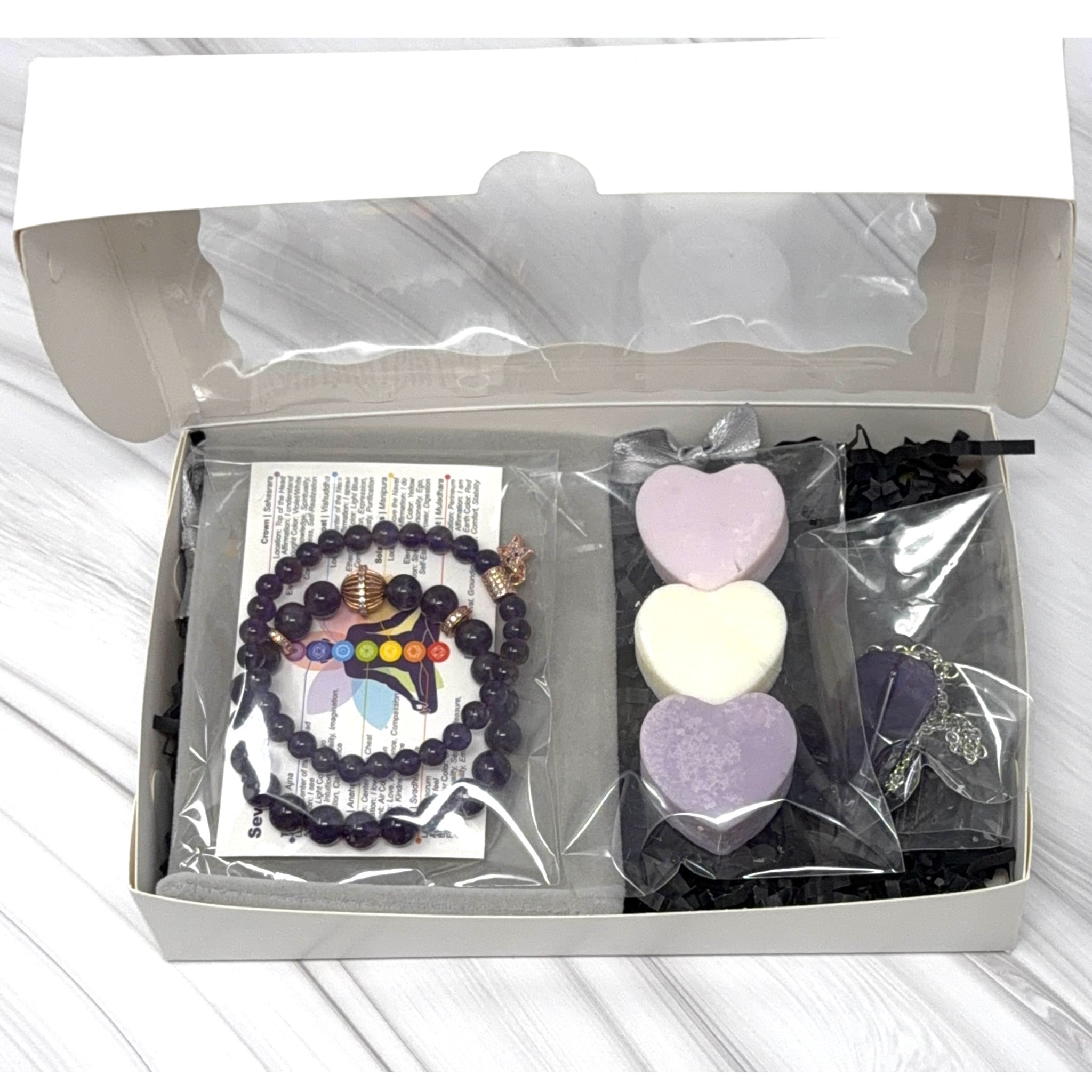 This bundle combines the relaxing aroma of lavender soy wax melts with the calming energy of amethyst, making it the perfect gift for someone who deserves softness, balance, and a little extra love.