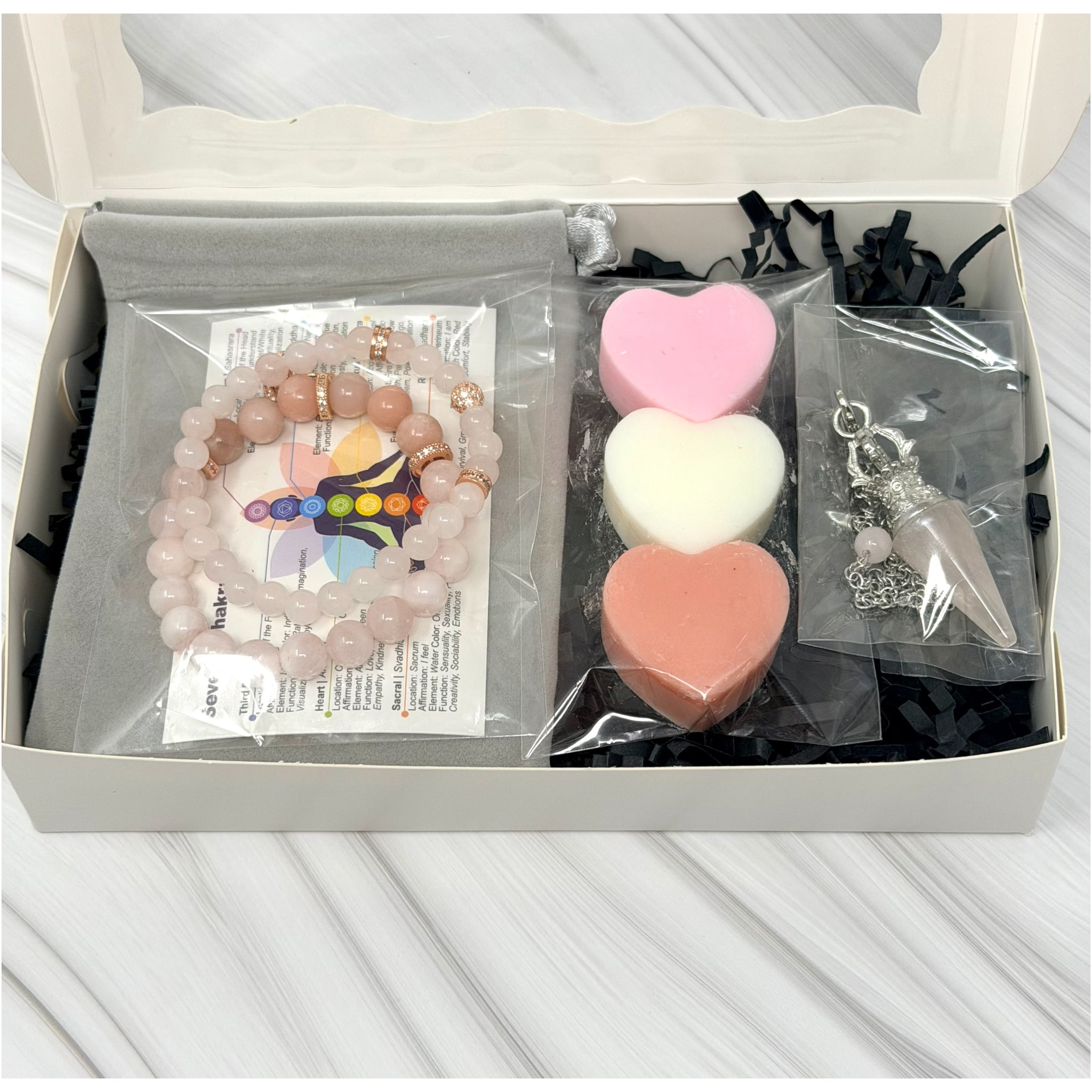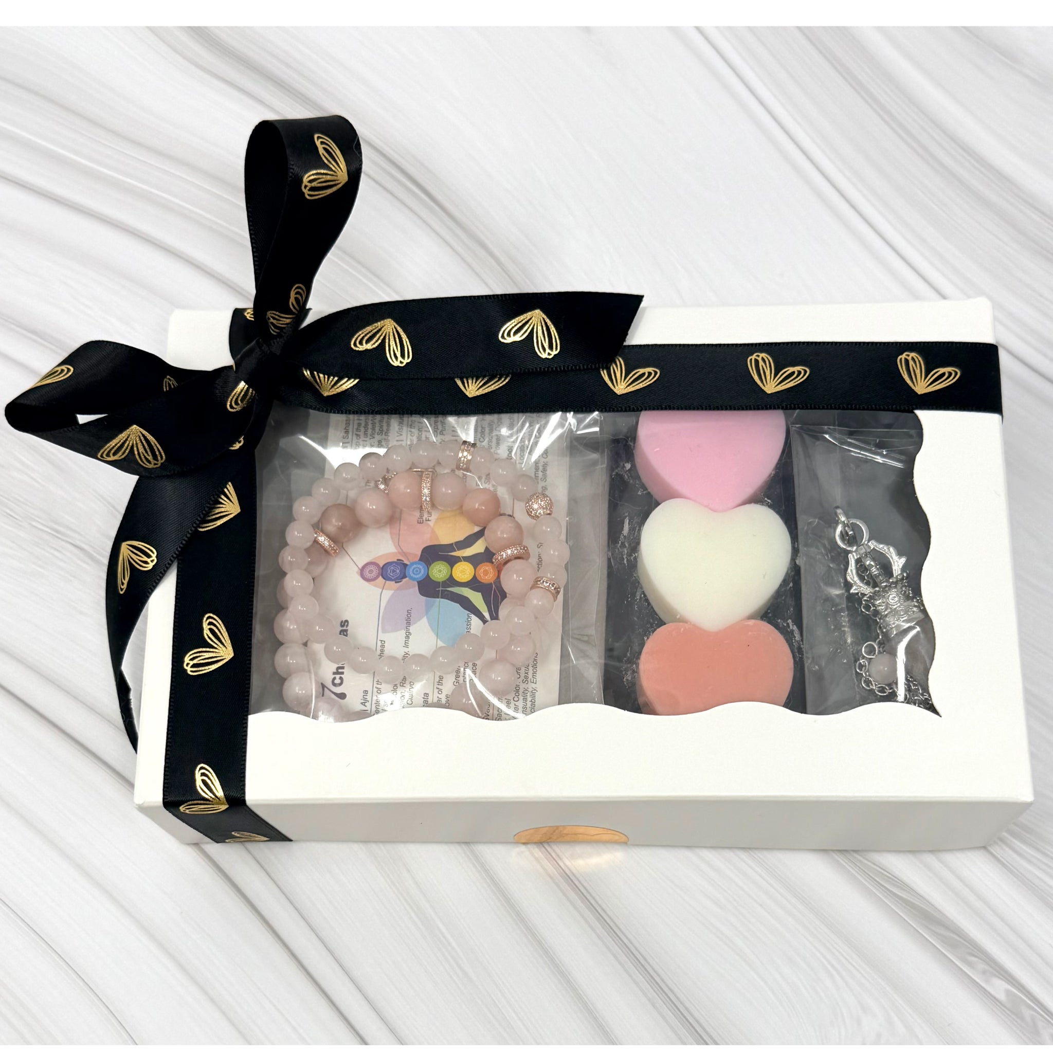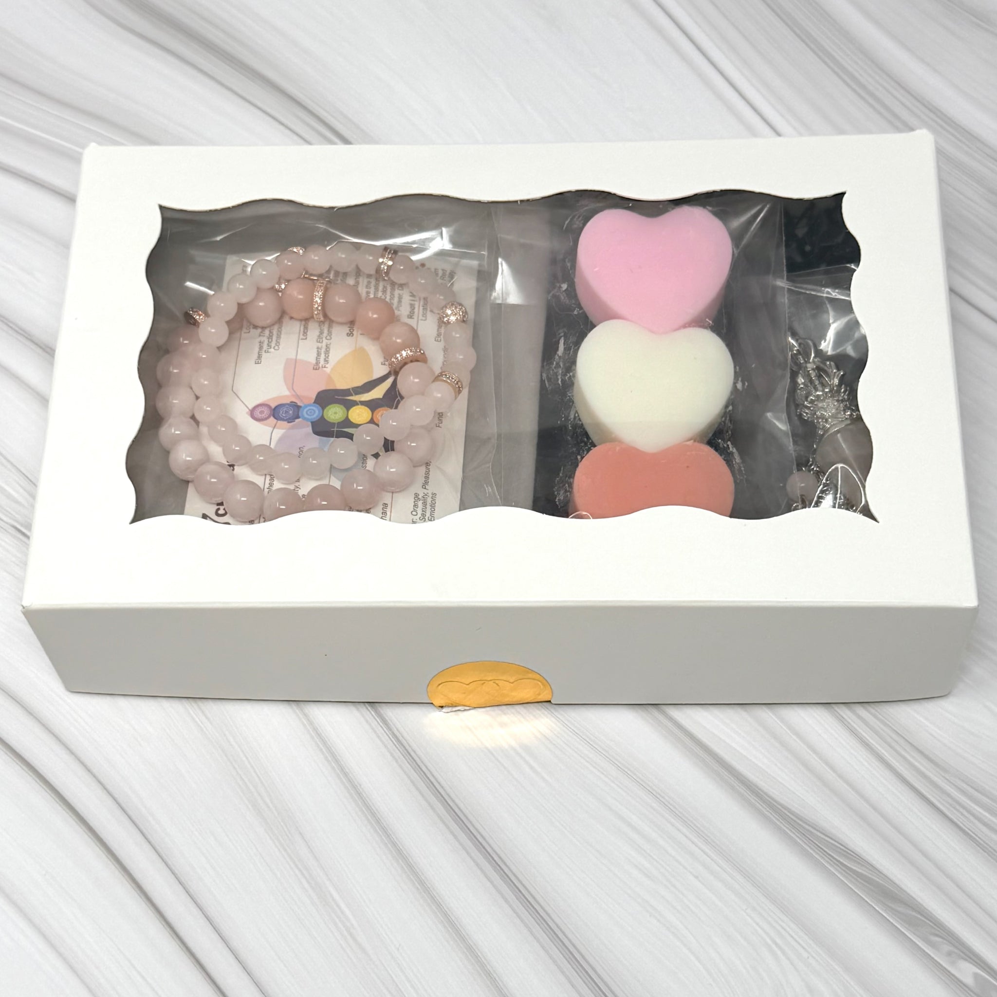 Handmade gemstone jewelry paired with heart wax melts, the perfect mix of beauty, meaning, and self love.
